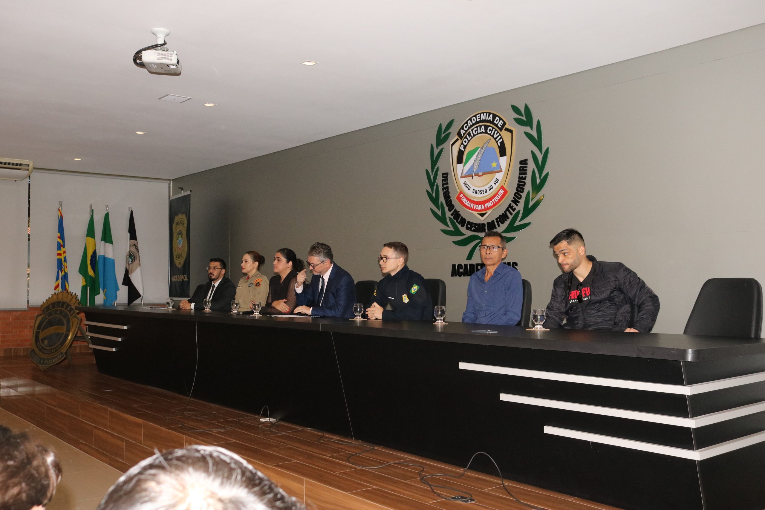 A solenidade de abertura contou com a presença do Sr. Fernando Souza, Subsecretário de Políticas Públicas para Povos Originários, representando a Secretária de Estado da Cidadania, Senhora Viviane Luiza da Silva; Lupérsio Degerone Lúcio, Delegado-Geral da Polícia Civil; Dra. Rôzeman Geise Rodrigues de Paula, Diretora da Academia de Polícia Civil; representantes do Corpo de Bombeiros Militar, Polícia Rodoviária Federal, Polícia Federal e demais autoridades.