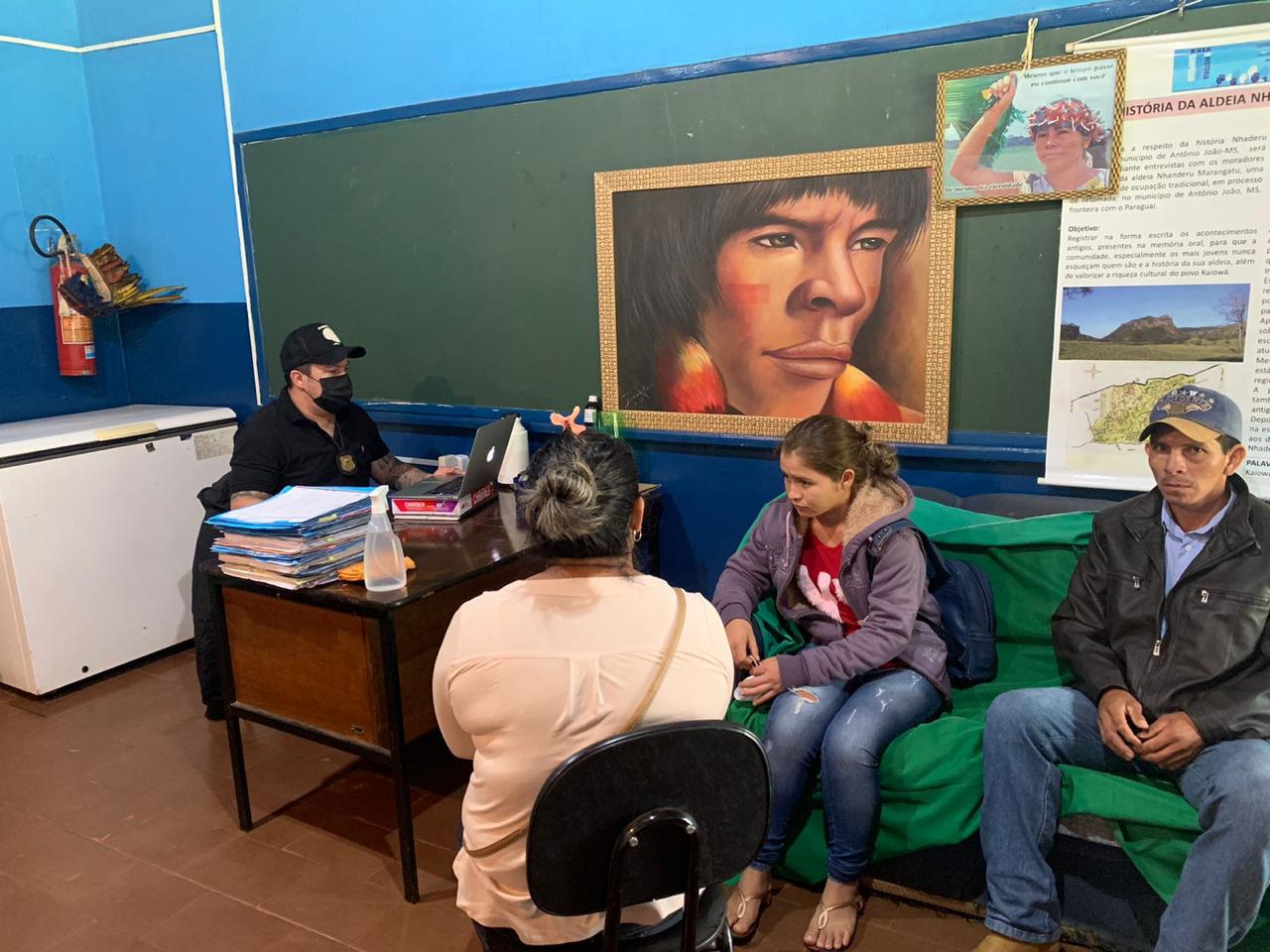 Antônio João (MS): A Polícia Civil realizou na última quinta-feira, 14/10, um mutirão para realização de oitivas de testemunhas e vítimas, que residem na aldeia Campestre, no município de Antônio João-MS. O objetivo da ação foi facilitar a vida dos residentes da aldeia, que possuem dificuldades para se deslocar até a delegacia, que fica na cidade.