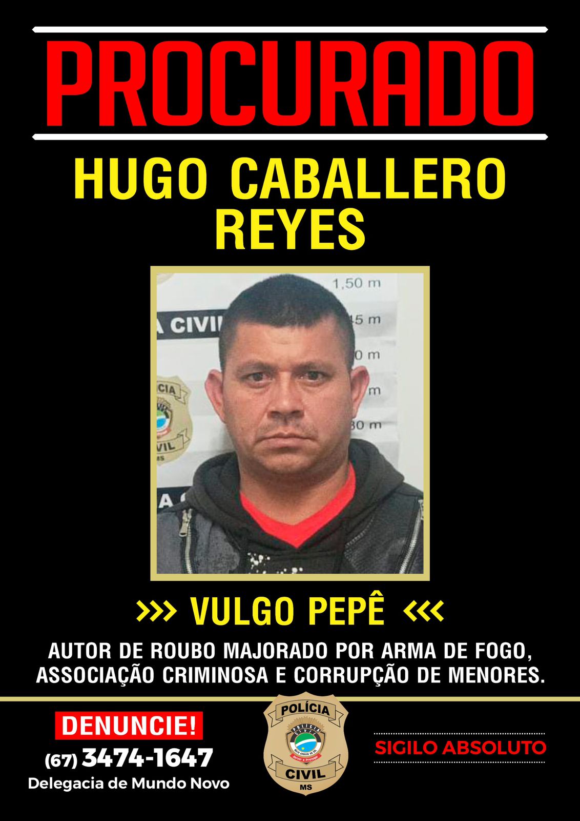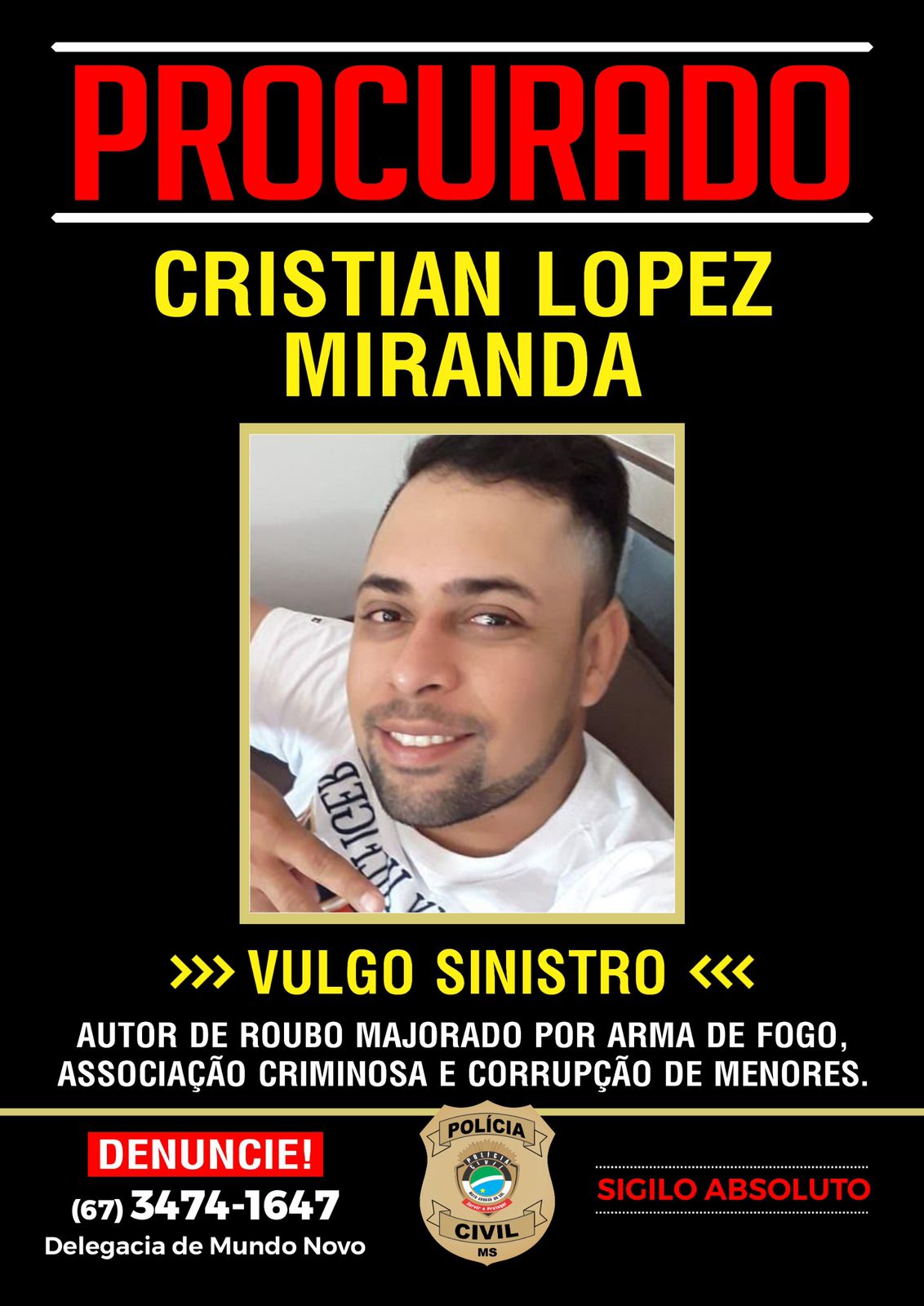Qualquer informação sobre o paradeiro dos assaltantes pode ser comunicada à Delegacia de Mundo Novo, através do numeral (67) 3474-1647. Será garantido o sigilo da informação.
