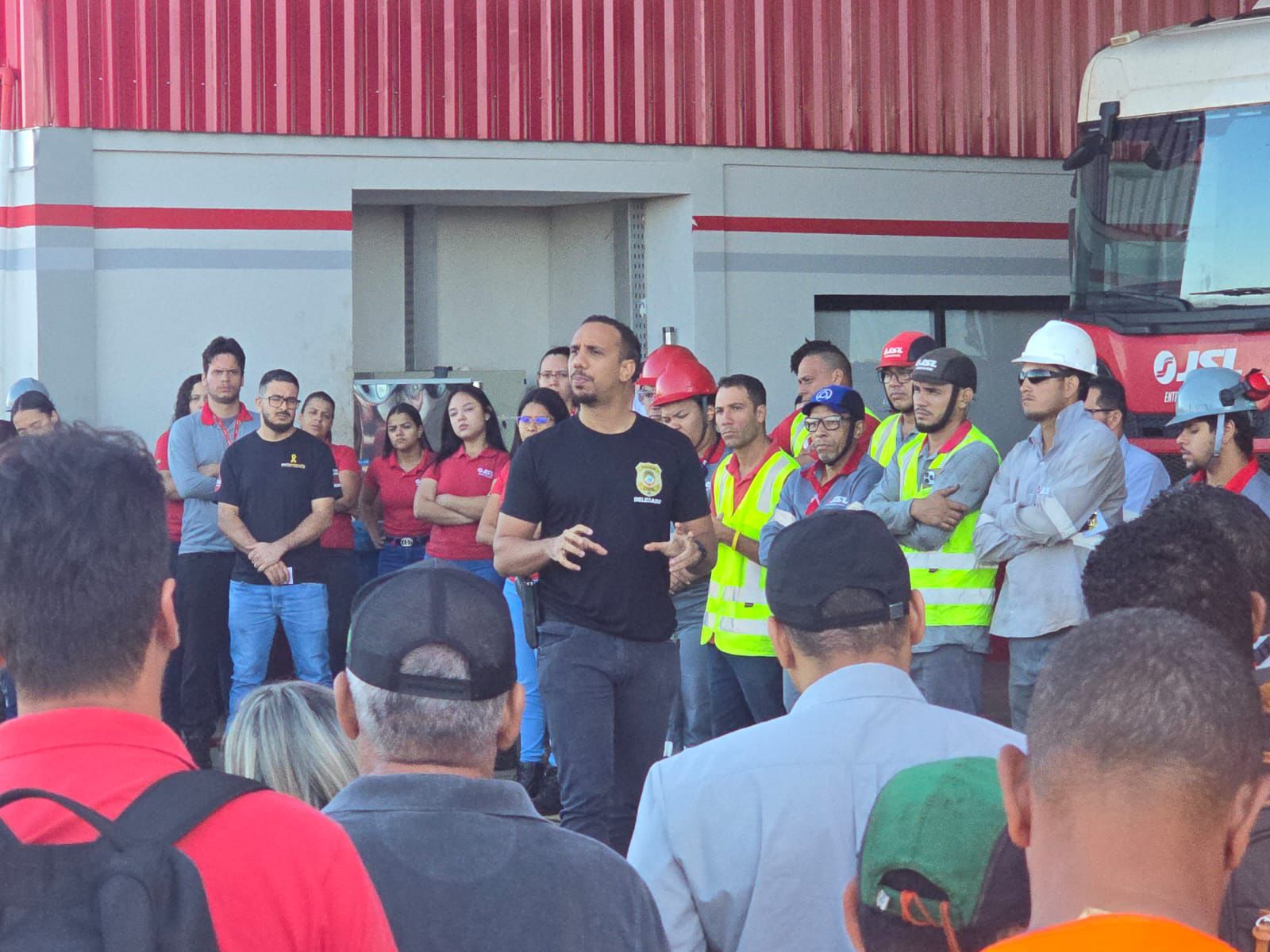 A Polícia Civil realizou, nesta sexta-feira (16), uma palestra voltada à conscientização sobre os temas das campanhas Maio Laranja e Maio Amarelo, direcionada aos colaboradores da empresa JSL. A atividade foi conduzida pelo delegado titular da unidade local, Felipe Braga.