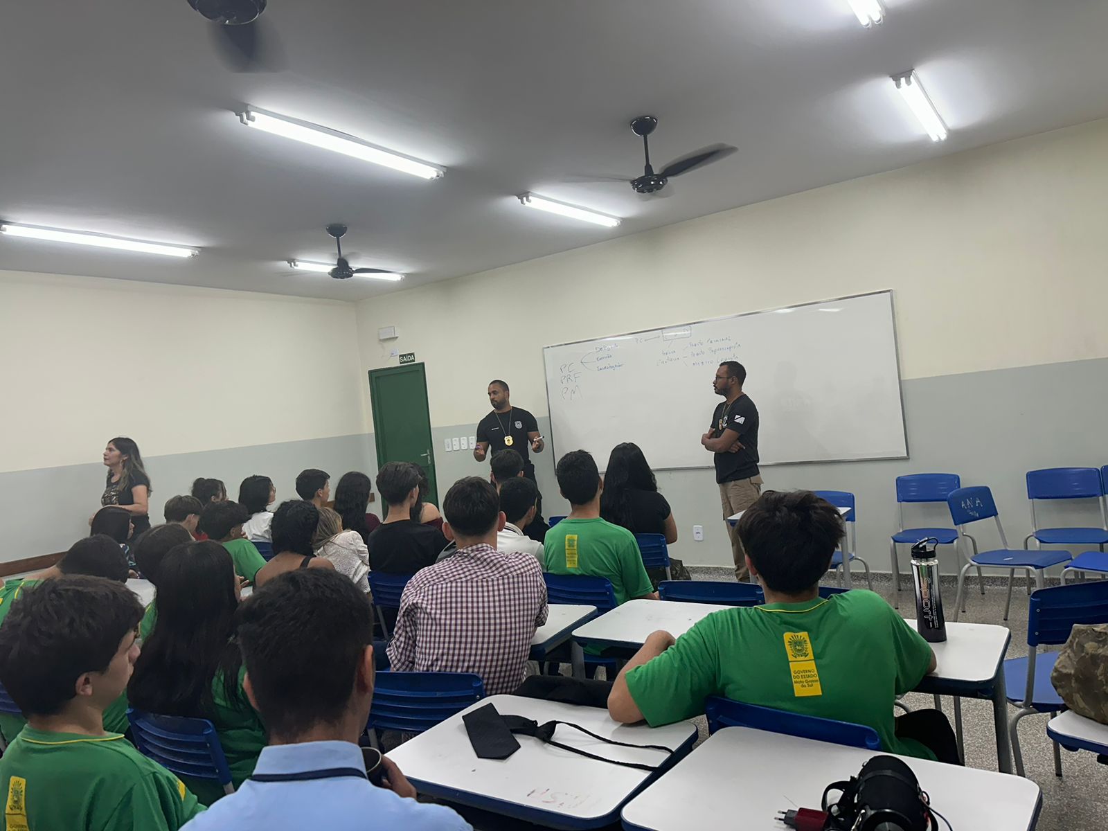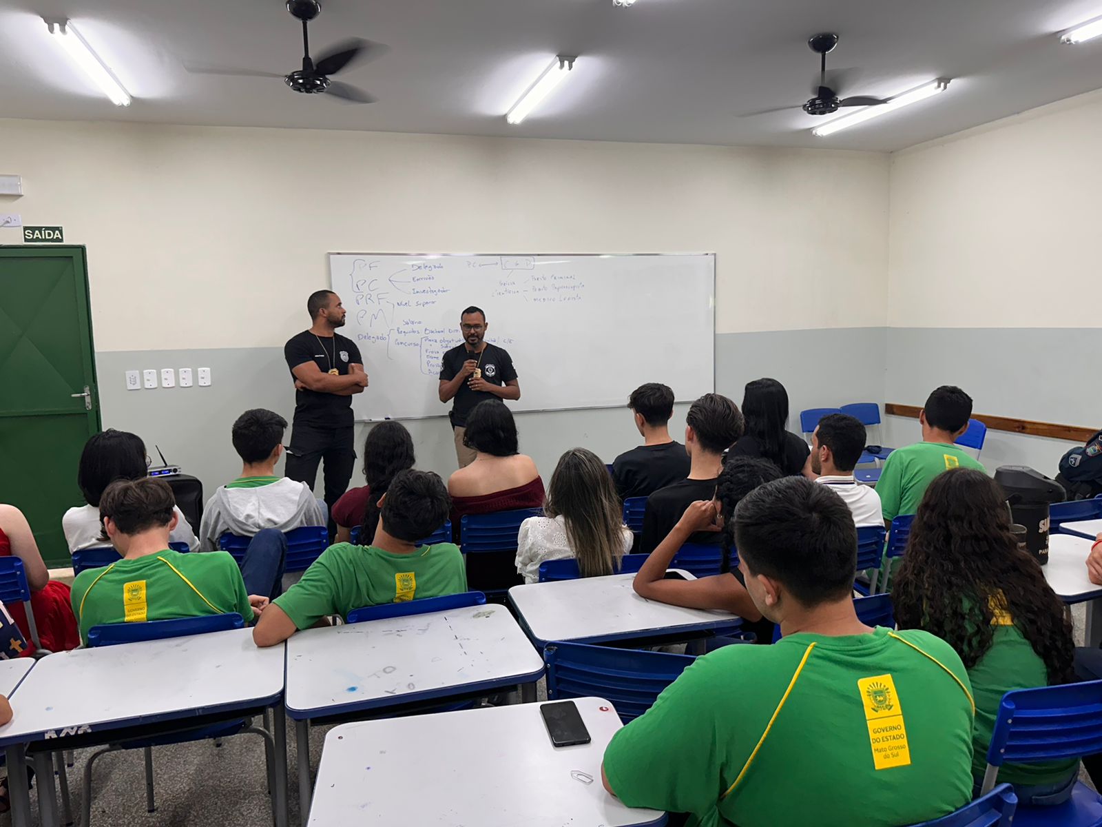 A Polícia Civil, por intermédio da Delegacia de Paranhos, ministrou nesta quint-feira, 30/11, uma palestra sobre profissões aos estudantes do ensino médio da Escola Estadual Santiago Benites, situada no município de Paranhos-MS. A Autoridade Policial, Raul Henrique Oliveira da Costa, e o Perito Papiloscopista, Johny Gonzaga da Costa Rosa, explicaram sobre atuação da Polícia Civil e da Polícia Científica.