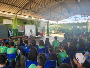 Foram realizadas duas palestras durante a manhã e duas à tarde, para alunos de diversas séries da Escola Estadual Lorentino Alves de Oliveira e da Escola Municipal São Francisco.