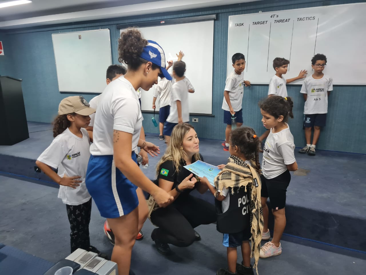 Na última quinta-feira, (28), a Polícia Civil por intermédio da investigadora de polícia judiciária, Raphaela Scapulatempo, lotada na Delegacia Especializada de Atendimento à Infância e Juventude (DEAIJ), realizou uma palestra na Força Aérea Brasileira para crianças que fazem parte do Programa de Forças no Esporte, desenvolvido pelo Ministério da Defesa, com apoio da Marinha, Exército e Aeronáutica.