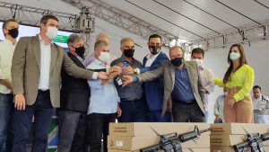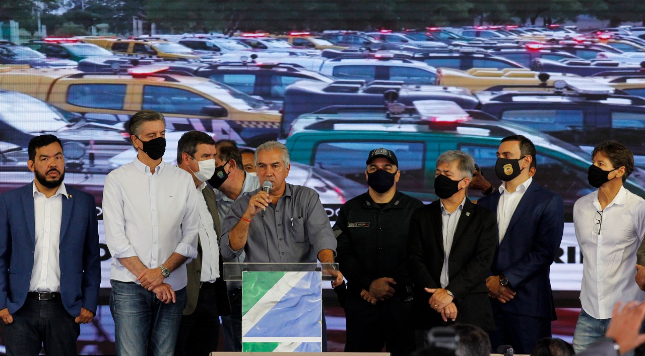 “Nesses sete anos, só em equipamentos, viaturas, coletes e armamentos, foram R$ 750 milhões investidos. Hoje, aqui, completamos 2.104 viaturas entregues. E até o final deste  ano serão mais de 2.600 para todas as regiões e forças policiais, propiciando uma política pública de segurança efetiva”, destacou Reinaldo Azambuja.