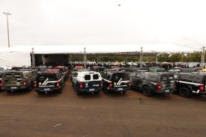 As forças policiais de Mato Grosso do Sul receberam, nesta quinta-feira (3), mais 237 novas viaturas para reforçar o trabalho nos 79 municípios e proporcionar mais segurança à população. Adquiridos ao custo de R$ 44,5 milhões, os veículos foram entregues pelo governador Reinaldo Azambuja em cerimônia no Parque das Nações Indígenas, em Campo Grande.
