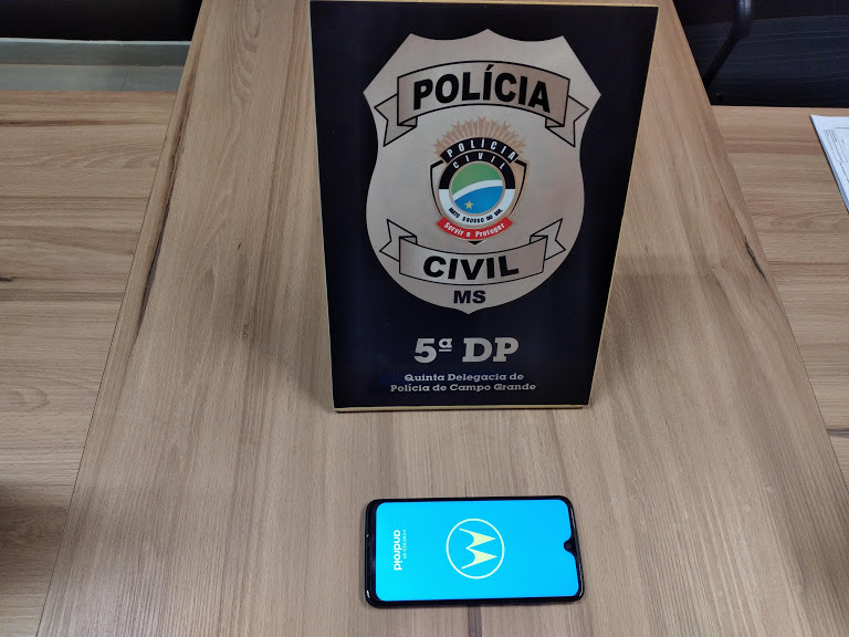 Campo Grande (MS): Na tarde de terça-feira, Investigadores do Setor de Investigações Gerais da 5ª Delegacia de Polícia, localizaram um aparelho celular marca Motorola, modelo Moto G7 Plus, que foi subtraído mediante roubo. O suspeito, um homem de 34 anos, que estava em posse do aparelho, foi informado que se tratava de produto de roubo.