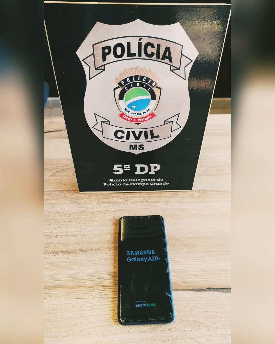 localizou um aparelho celular da marca Samsung A20, que foi roubado na área central, quando um homem conduzindo uma motocicleta parou ao lado do carro da vítima, na Avenida das Bandeiras, e, com a mão por baixo da camiseta, exigiu a entrega do aparelho, dizendo que atiraria caso não entregasse.