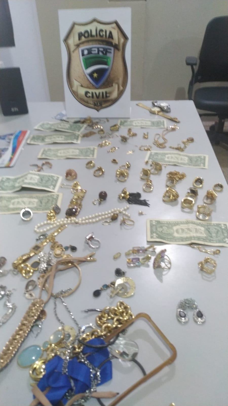 Campo Grande (MS): A Polícia Civil, por intermédio da Delegacia Especializada na Repressão aos Crimes de Roubos e Furtos (DERF) e Delegacia de Repressão aos Crimes de Furtos e Roubos de Veículos (DEFURV), recuperou mais de R$ 250 mil em joias e outros objetos subtraídos, além de identificar e autuar em flagrante os autores do furto qualificado. Os itens foram subtraídos de uma residência localizada na Avenida Presidente Vargas, na Vila Duque de Caxias, em Campo Grande-MS.