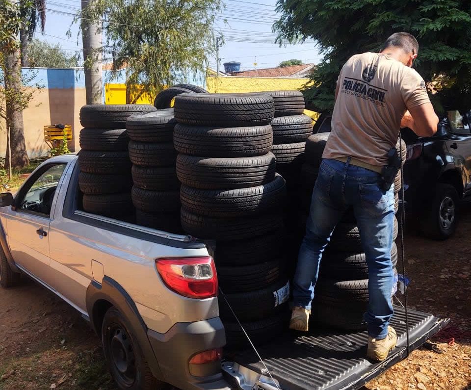 Ao chegarem na residência alvo, os investigadores constataram que o suspeito utilizava o imóvel para estocar pneus contrabandeados, possivelmente do Paraguai, tendo em vista que foram localizadas cerca de 60 unidades de pneus novos de automóveis e motocicletas, sem origem comprovada, que foram apreendidos e encaminhados para a 6ªDP.