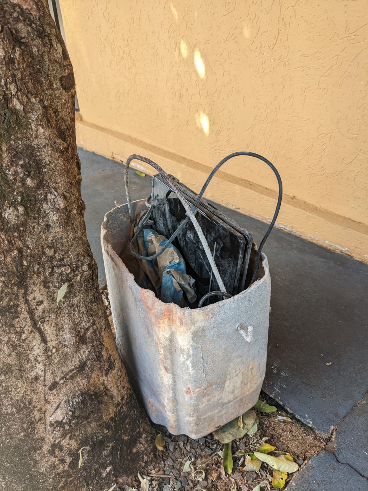 O notebook furtado foi encontrado escondido em um balde de entulho de construções, sendo devidamente apreendido para posterior devolução ao proprietário.