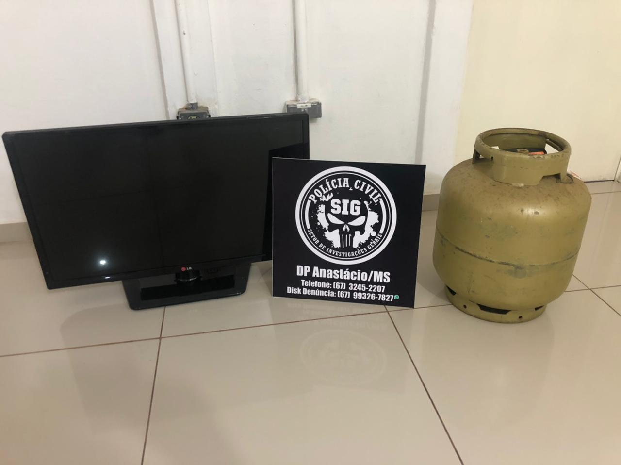 Os tênis, a TV e o botijão foram encontrados em sua posse. Os objetos furtados foram apreendidos, avaliados e devolvidos para as vítimas.