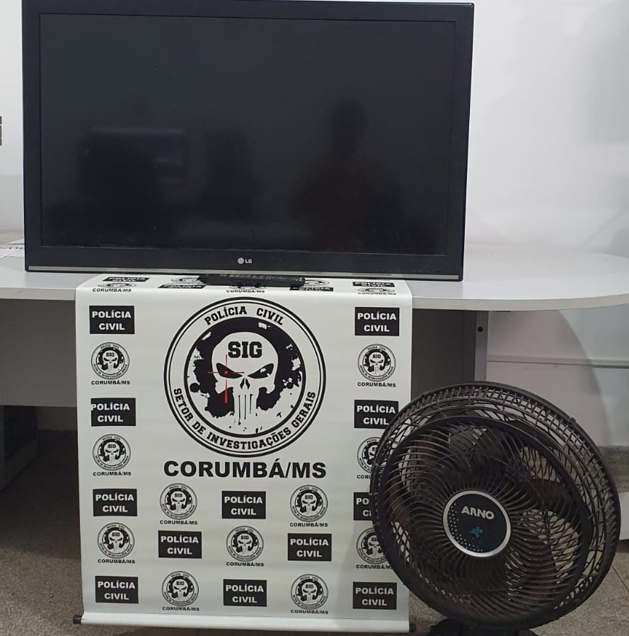 A Polícia Civil recuperou nesta terça-feira, 06/12, em Corumbá-MS, 01 aparelho televisor de 43 polegadas e 01 ventilador que haviam sido subtraídos de uma residência, no Bairro Universitário, em referida cidade, no dia 30 de novembro de 2022.