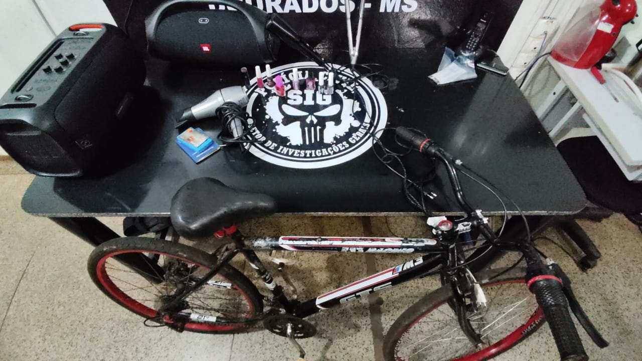A proprietária da residência foi conduzida até a 1ª Delegacia de Polícia Civil de Dourados, onde foi autuada em flagrante delito por receptação. Na referida casa, também foi encontrada a bicicleta preta com aros vermelho, que aparece nas imagens das câmeras de segurança dos comércios furtados sendo utilizada por um homem.