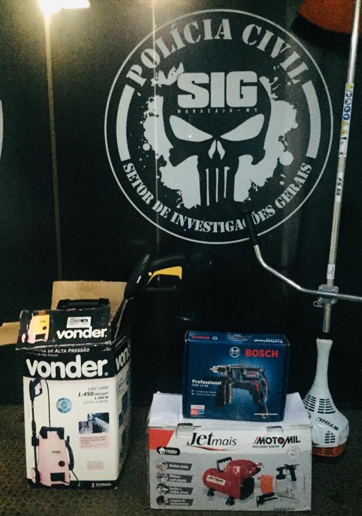 MARACAJU (MS): O Setor de Investigações Gerais (SIG) da Polícia Civil em Maracaju recuperou, nesta quinta-feira (7), um compressor, uma furadeira, uma lavadora de alta pressão e uma roçadeira que haviam sido furtadas por MURILO FARIAS ENDRES (24) do depósito da empresa onde trabalhava, no dia 1º de fevereiro.