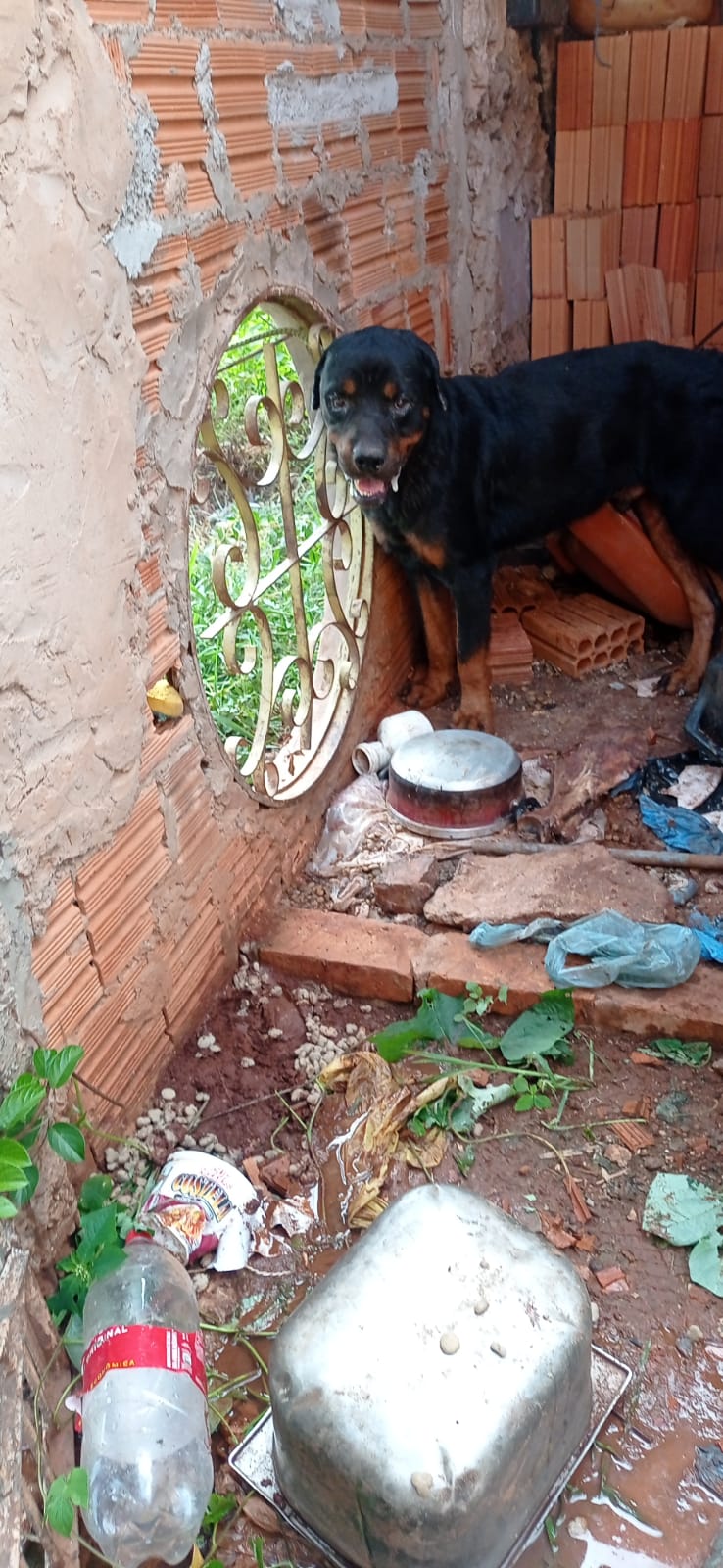 Diante da denúncia, uma equipe da 1ª Delegacia de Corumbá se deslocou até o imóvel no Bairro Vitoria Régia, parte alta da cidade. No local os policiais se depararam com um cachorro da raça Rottweiler, preso em um pequeno espaço, em meio a fezes, urina e vários entulhos.