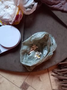 No local indicado na denúncia, os investigadores de polícia constataram que a casa estava desabitada e totalmente abandonada. Em incursão no interior do imóvel foi localizado na cozinha, uma mochila e, em seu interior, uma embalagem plástica contendo 670 gramas de substância análoga a cocaína. Em outra embalagem plástica, que também estava na mochila, foi localizada outra porção menor, com 47 gramas de substância análoga a cocaína e, ainda, outras 49 pequenas porções já prontas para o comércio pesando ao todo 46 gramas da mesma substância, além de uma balança digital.