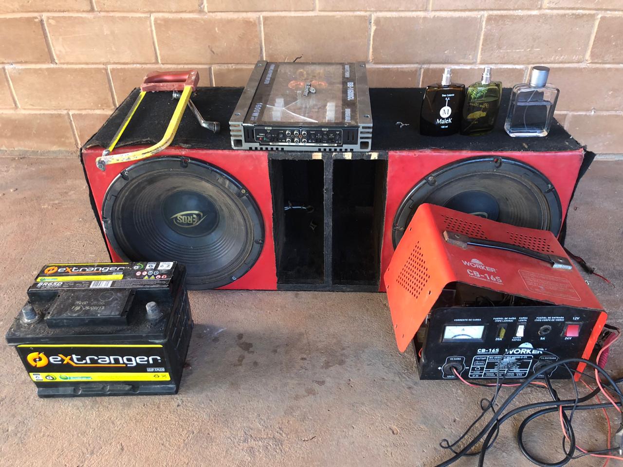 No local também foram localizados objetos furtados entregues por usuários. Foram encontrados uma caixa de som, bateria de veículo, carregador de bateria, perfumes, etc.