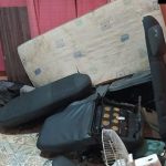 Em um dos cômodos da residência foram encontradas diversas peças de veículos, todas sem procedência, e um tanque de combustível com identificação de chassi com ocorrência de Roubo/Furto no Estado de São Paulo.