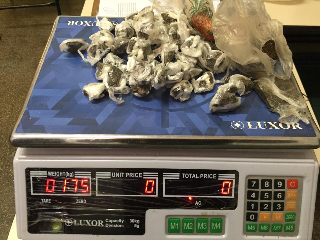 No local foram encontradas 55 pequenas embalagens de substância análoga à maconha juntamente com mais 2 tabletes maiores da droga, 5 pequenas embalagens plásticas contendo substância análoga à pasta base de cocaína juntamente com mais 2 tabletes maiores da mesma substância, diversas embalagens plásticas vazias, nas quais os autores dichavavam os tabletes maiores e embalavam as pequenas porções para venda, além de uma espingarda calibre .28 sem numeração aparente e uma arma curta juntamente com duas munições calibre .22.