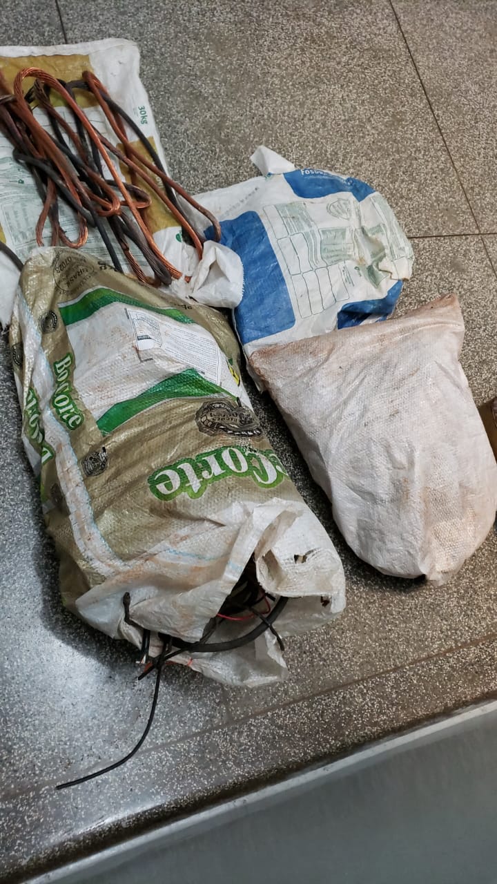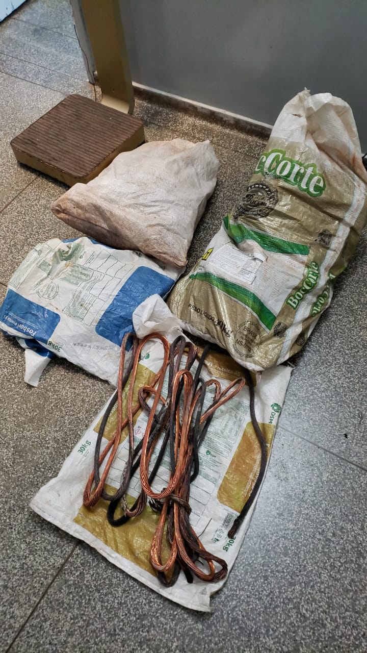 A equipe se dirigiu até o local indicado e localizou parte dos fios furtados já queimados – prática utilizada para derreter a borracha ou plástico que envolve o metal – e outra parte ainda intacta, porém em pedaços.