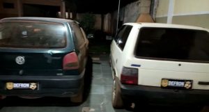 No VW Gol foram apreendidos 38 tabletes de maconha e 11 pacotes de skunk, Já no Fiat Uno foram apreendidos 43 tabletes de maconha.