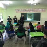 Na ocasião, um dos policiais, egresso daquela escola – Maikon Berb, contou um pouco de sua trajetória de estudos até ingressar na carreira. Na mesma oportunidade, os alunos puderam tirar dúvidas sobre o dia a dia, rotina e a carreira policial como um todo.