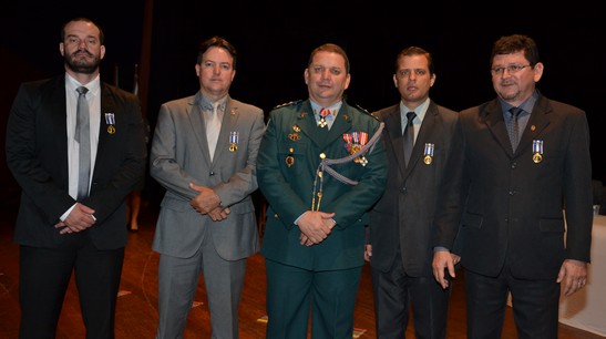 CAMPO GRANDE (MS): Por indicação do Comando da Polícia Militar de Mato Grosso do Sul, o Governador do Estado, Reinaldo Azambuja fez a entrega da “Medalha Tiradentes” a diversos policiais civis entre os quais os Delegados de Polícia FERNANDO VILLA DE PAULA, Assessor da Delegacia Geral da Polícia Civil; ADRIANO GARCIA GERALDO, Diretor do Departamento de Polícia do Interior (DPI); LUIS ALBERTO OJEDA, Delegado Titular da Delegacia Especializada de Repressão a Roubos e Furtos (DERF) e MIKAILL ALESSANDRO GOUVEIA FARIA, da Delegacia de Polícia de Amambai (MS).