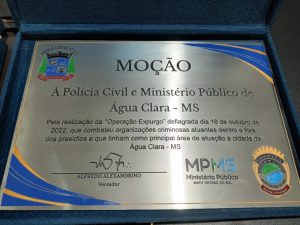 Na última quarta-feira, 08/02, os policiais civis lotados na Delegacia de Polícia de Água Clara-MS receberam uma homenagem da Câmara de Vereadores pelo sucesso da Operação Expurgo, deflagrada no dia 18 de outubro 2022.