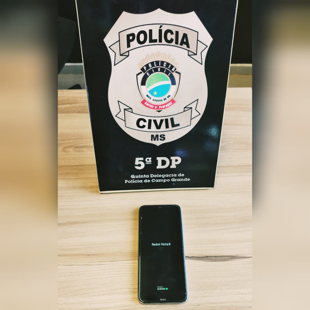 deslocaram até um endereço no Bairro Aero Rancho, com o fim de localizar um homem de 22 anos, que estava utilizando um aparelho celular marca Xiaomi, modelo Redmi Note 8, que fora furtado no dia 2 de janeiro deste ano.