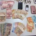 Na residência de um dos suspeitos dos roubos, uma adolescente foi detida em poder de diversos tabletes de maconha, porções de cocaína, balanças de precisão, um revólver calibre 38, munições e grande quantidade de dinheiro, além de peças dos veículos roubados e outros bens das vítimas. O namorado da adolescente, foi identificado como sendo FABIO DA SILVA BOGADO MENDES (21) e responderá pelos delitos de roubo, tráfico de drogas, posse de arma de fogo e corrupção de menores.