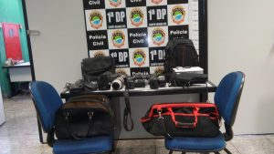 CAMPO GRANDE (MS): Investigadores do Setor de Investigações Gerais da 1ª Delegacia de Polícia da Capital, em diligências na região da rua 13 de Junho próximo a Av. Rachid Neder (área central), suspeitaram de uma mulher que carregava uma mochila preta com grande volume. Durante abordagem, os policiais identificaram na mochila da suspeita equipamentos de fotografia, tais como câmera fotográfica profissional, lentes e câmera de filmagem.