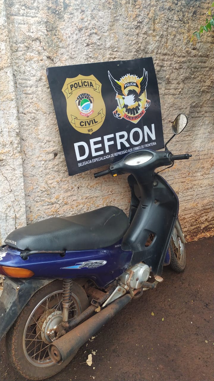 Dourados (MS): A Polícia Civil, por intermédio da Delegacia de Repressão aos Crimes de Fronteira – DEFRON, no âmbito da Operação Hórus do Programa VIGIA, recuperou uma motoneta furtada no último domingo em Dourados. Na manhã de ontem (1º), policiais da Delegacia receberam informações de que uma motoneta Honda Biz furtada no dia 29 de maio estaria na posse de um indivíduo e em diligências acabaram encontrando o referido veículo na posse de um jovem de 23 anos de idade.