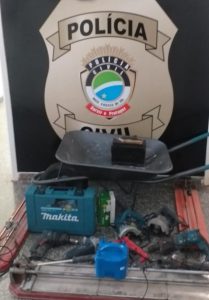 A equipe localizou o outro comprador em posse do objeto. Em buscas no imóvel, ainda foram localizados: 3 riscadeiras de piso, 1 bateria veicular, 1 compressor, 1 esmerilhadeira, 1 furadeira, 1 martelete elétrico e 1 serra mármore.