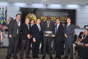 O Delegado-Geral da Polícia Civil, Marcelo Vargas, foi representado na solenidade pelo adjunto, Adriano Garcia Geraldo, que esta entre os homenageados com a Medalha Legislativa “Delegado de Polícia Civil Aloysio Franco de Oliveira”. O secretário de Justiça e Segurança Pública, Antônio Carlos Videira, também esteve presente na sessão solene e foi um  dos homenageados da noite.