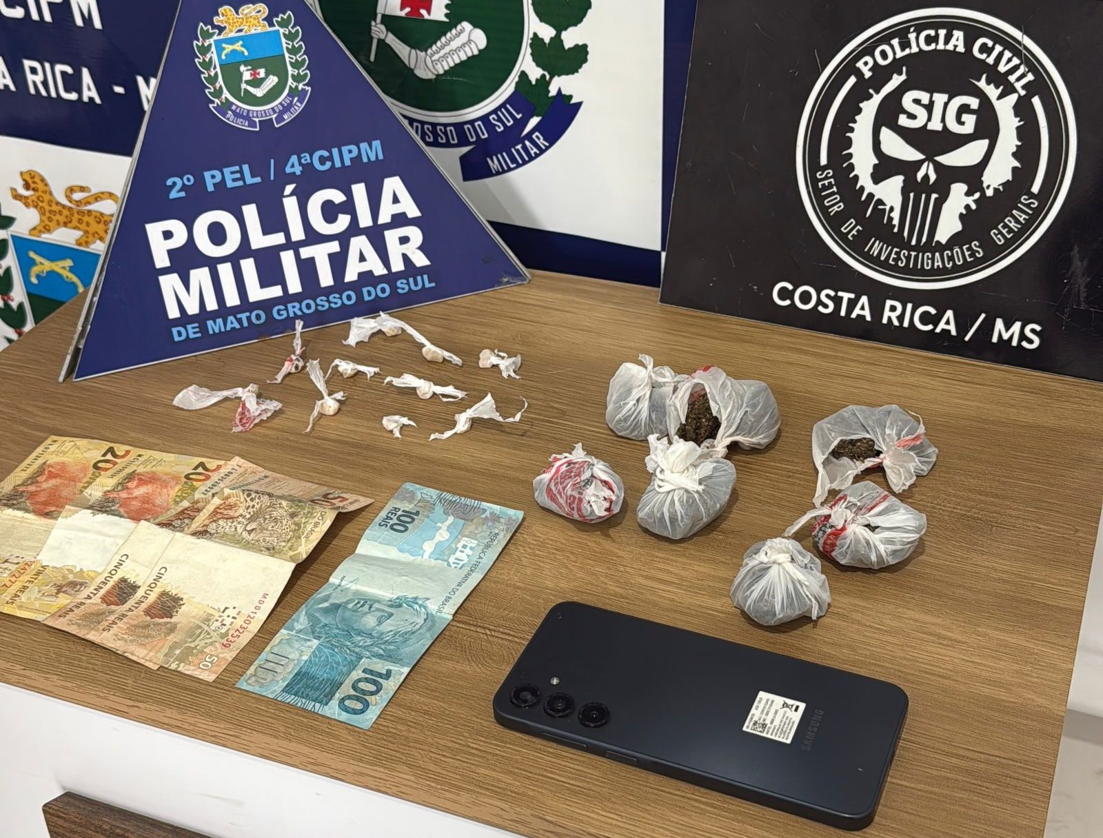 A Delegacia de Polícia de Costa Rica, em ação integrada com a Polícia Militar prendeu em flagrante, nesta quinta-feira (21), G.R.C., uma jovem de 19 anos, pelo crime de tráfico de drogas.