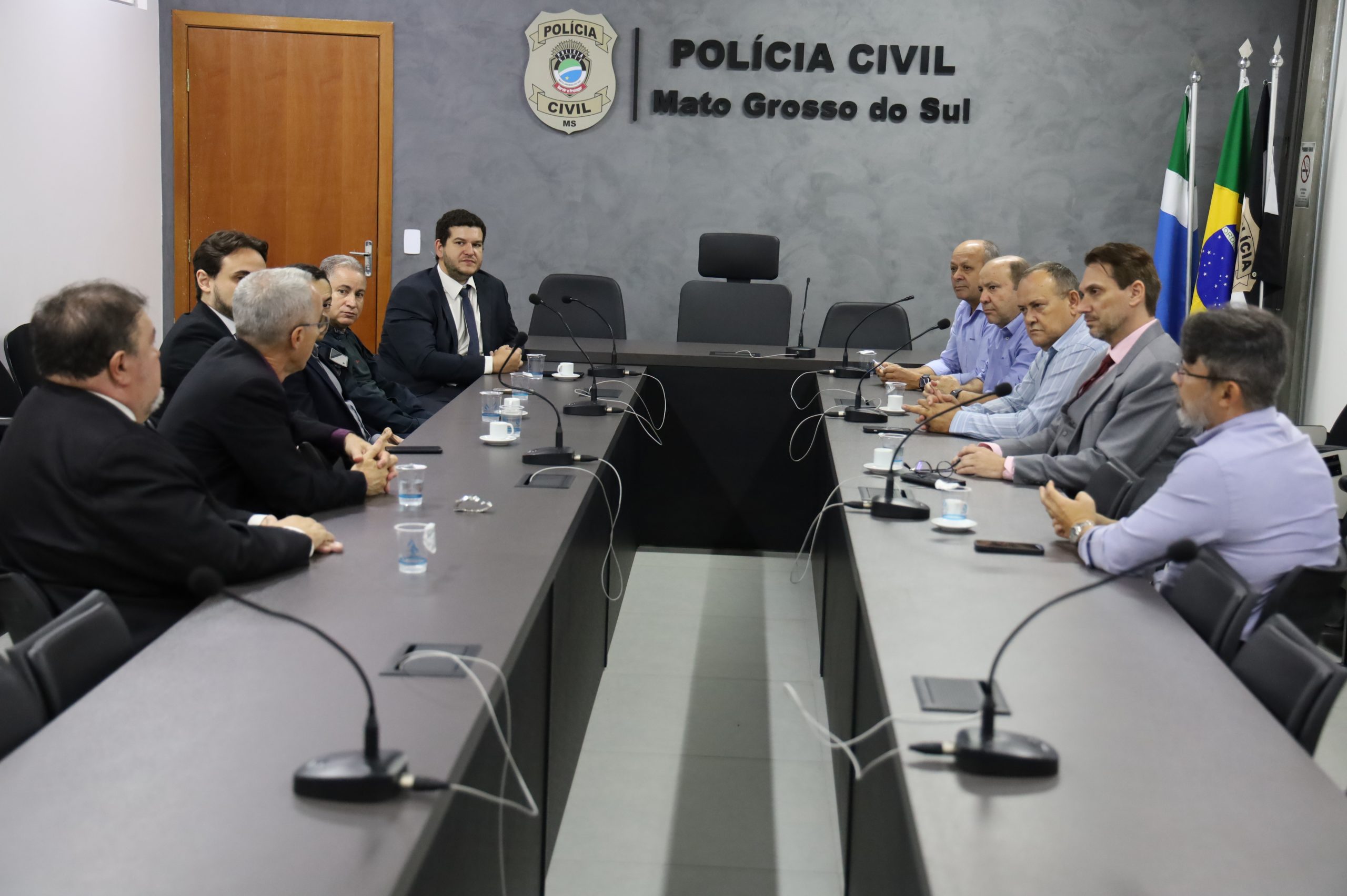 Na manhã desta quinta-feira (2), uma comitiva do COISEC foi recebida na sala de reuniões do CSPC pelos Diretores do Departamento de Polícia da Capital – delegado Edilson dos Santos Silva, do Departamento de Polícia Especializada – delegado Ivan Barreira, acompanhados dos coordenadores delegado Mário Donizete Queiroz e delegado Rodrigo Yassaka.