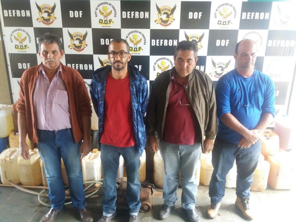 NOVA ALVORADA DO SUL (MS): Foram presos na data desta quinta-feira (11) VALDECI DUARTE PACHECO (54), morador de Nova Alvorada do Sul, e os motoristas ROBERTO CARLOS SILVA QUEIROZ (49), WILSON CARDOSO DOS SANTOS (39), e CARLOS ANTONIO BONFIM (50), todos moradores da cidade de Campo Grande e funcionários de uma empresa transportadora de combustíveis.