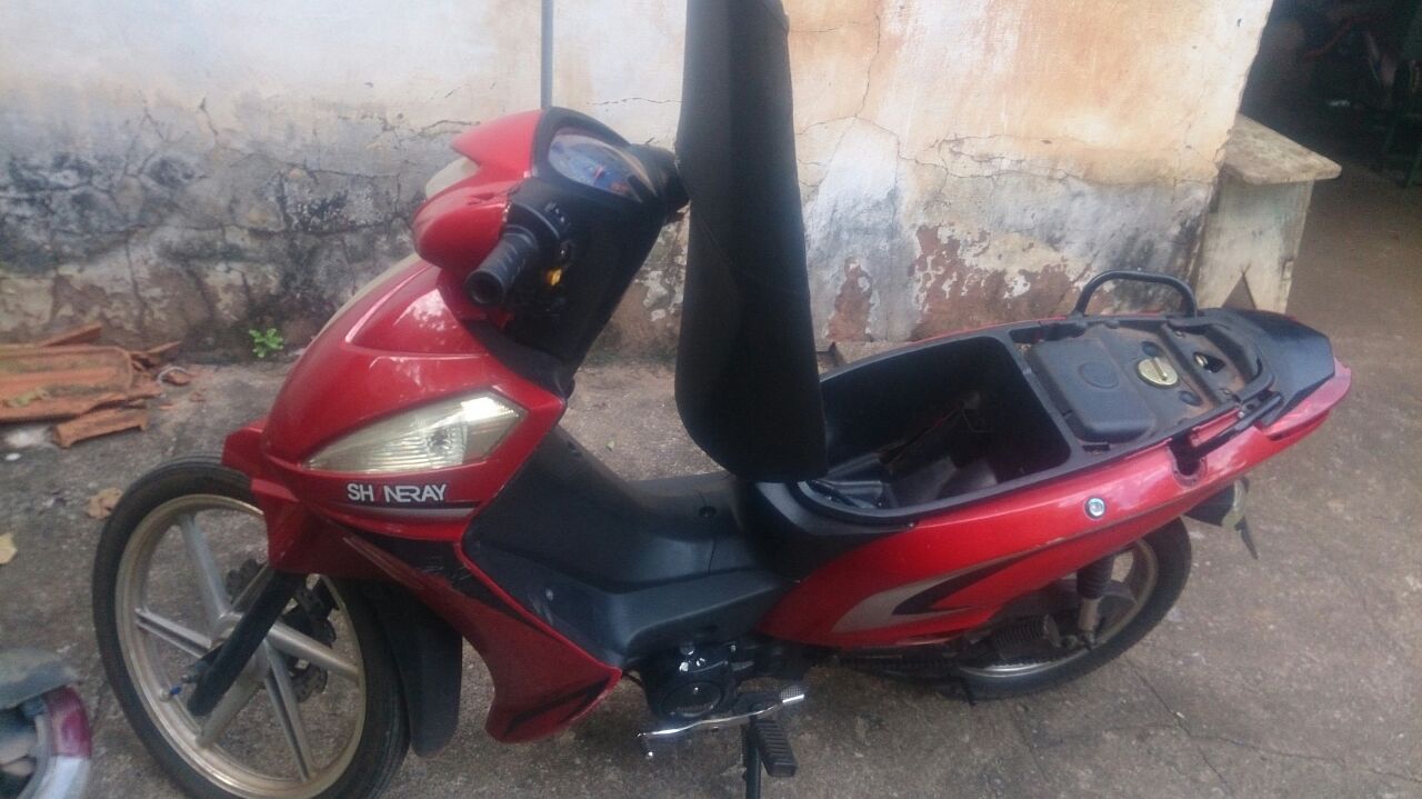 Como o mesmo não portava seus documentos pessoais de identificação foi solicitado que levassem os policiais até sua residência para checagem de dados pessoais. Ao entrarem no quintal da casa, os investigadores verificaram um ciclomotor da marca Shineray de cor vermelha parcialmente desmontada, sem a placa de identificação, características do veículo furtado.