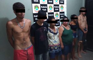 APARECIDA DO TABOADO (MS): Policiais civis de Aparecida, em parceria com policiais militares prenderam seis pessoas, no final da tarde desta quinta-feira (31), em uma residência, situada muito próximo a Escola Estadual “Ernesto Rodrigues”. MARCIA GERALDELLI RUFINO (48), SANDRA CARLA DE SOUZA (35), MARIO LUIZ GERALDELLI BEZERRA (27), MARCOS ANTONIO GERALDELLI BEZERRA (24), MAIKO FRANCIS GERALDELLI BEZERRA (22), e LARISSA ADRIELY DA SILVA SOARES (21) foram presos em flagrante.