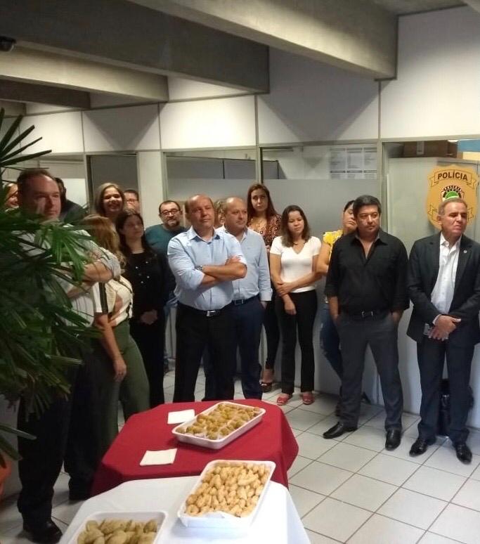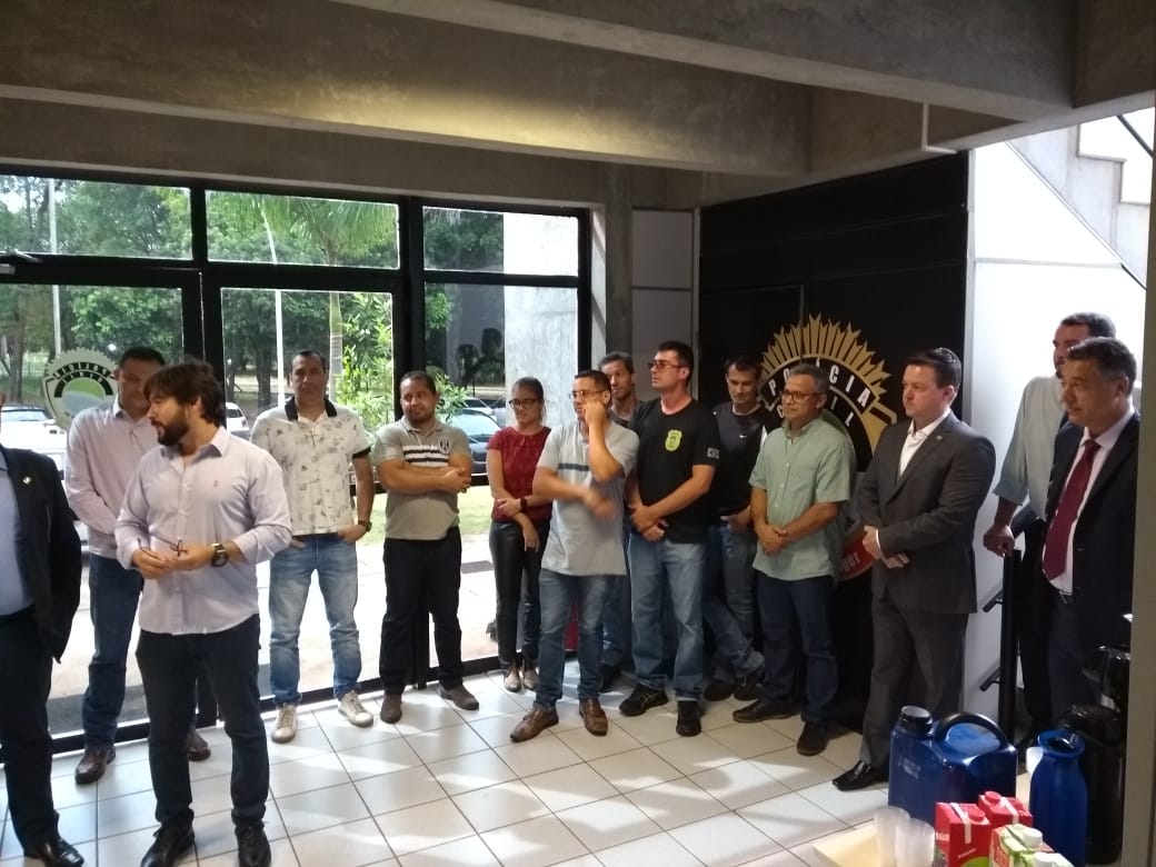 Campo Grande (MS): Na manhã de hoje (03), o presidente do Sinpol, Giancarlo Miranda; o diretor jurídico, Hectore Ocampo Filho; e o diretor administrativo adjunto, Jaime Martinelli estiveram na DGPC realizando mais um bate-papo com a categoria, acompanhado de um café da manhã, que teve também a presença do Delegado Geral, Marcelo Vargas e ainda, de diretores de departamentos e da Acadepol.