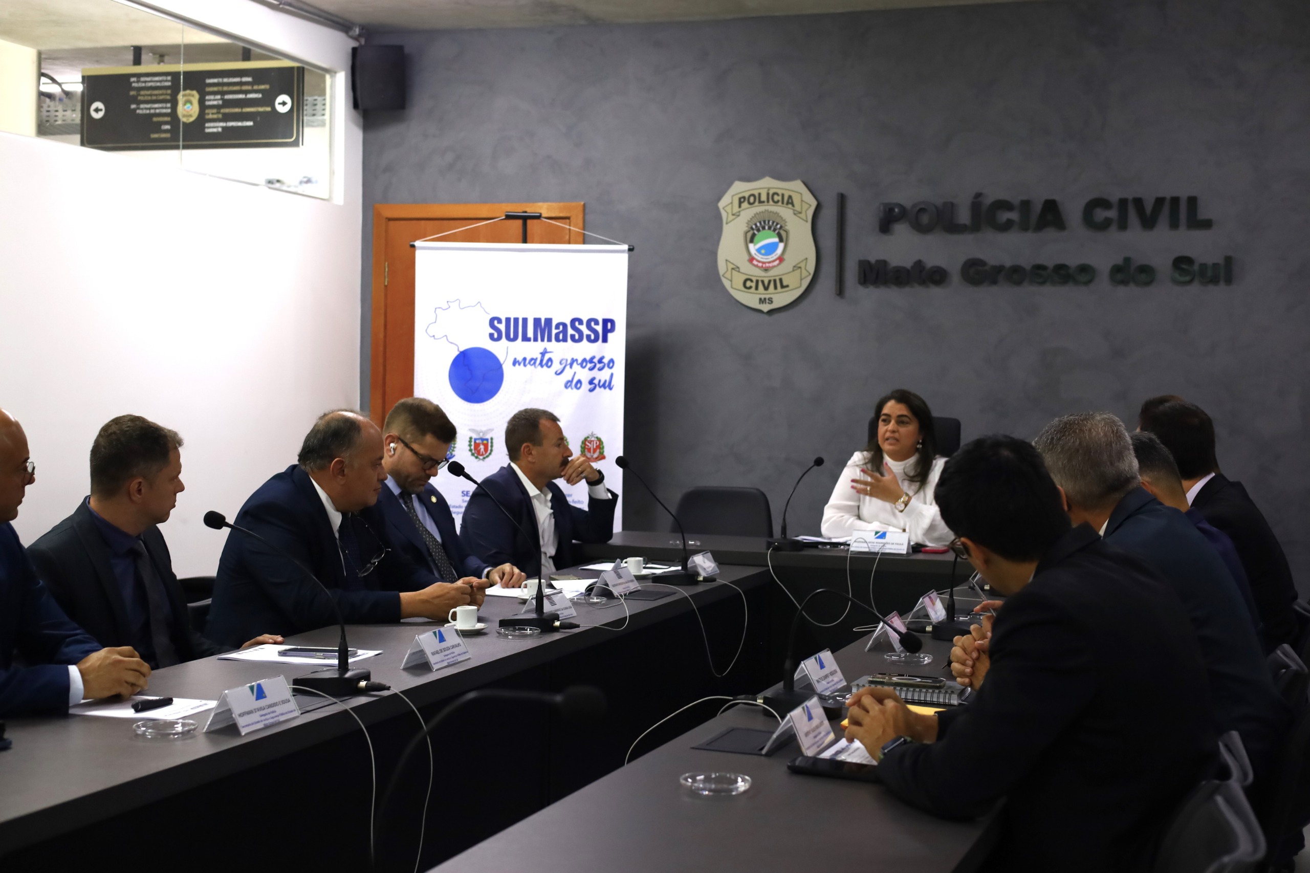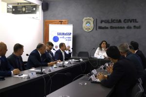 Na última sexta-feira (29), a Delegada-Geral Adjunta da Polícia Civil do Mato grosso do sul, Rozeman Geise Rodrigues de Paula, coordenou a Câmara Temática durante o segundo dia do SulmaSSP, entre Delegados-Gerais e representares das Policias Civis dos estados de São Paulo, Paraná, Rio Grande do Sul e Santa Catarina. O evento inédito no estado reuniu essas autoridades com o objetivo de fortalecer o compartilhamento de informações e boas práticas, além de alinhar estratégias integradas para reprimir os crimes que ocorrem nas fronteiras dos Estados com Paraguai, Bolívia e Argentina.