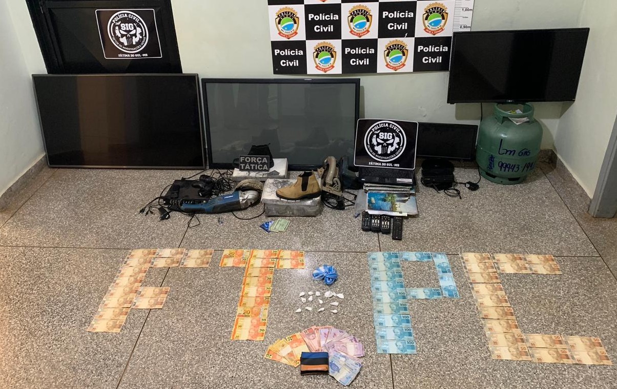 Na casa e no comércio do suspeito, localizado na área central de Fátima do Sul, foram localizados diversos eletrônicos e ferramentas elétricas de procedência duvidosa, principalmente televisores, onde alguns destes já foram identificados pelas vítimas de furtos.