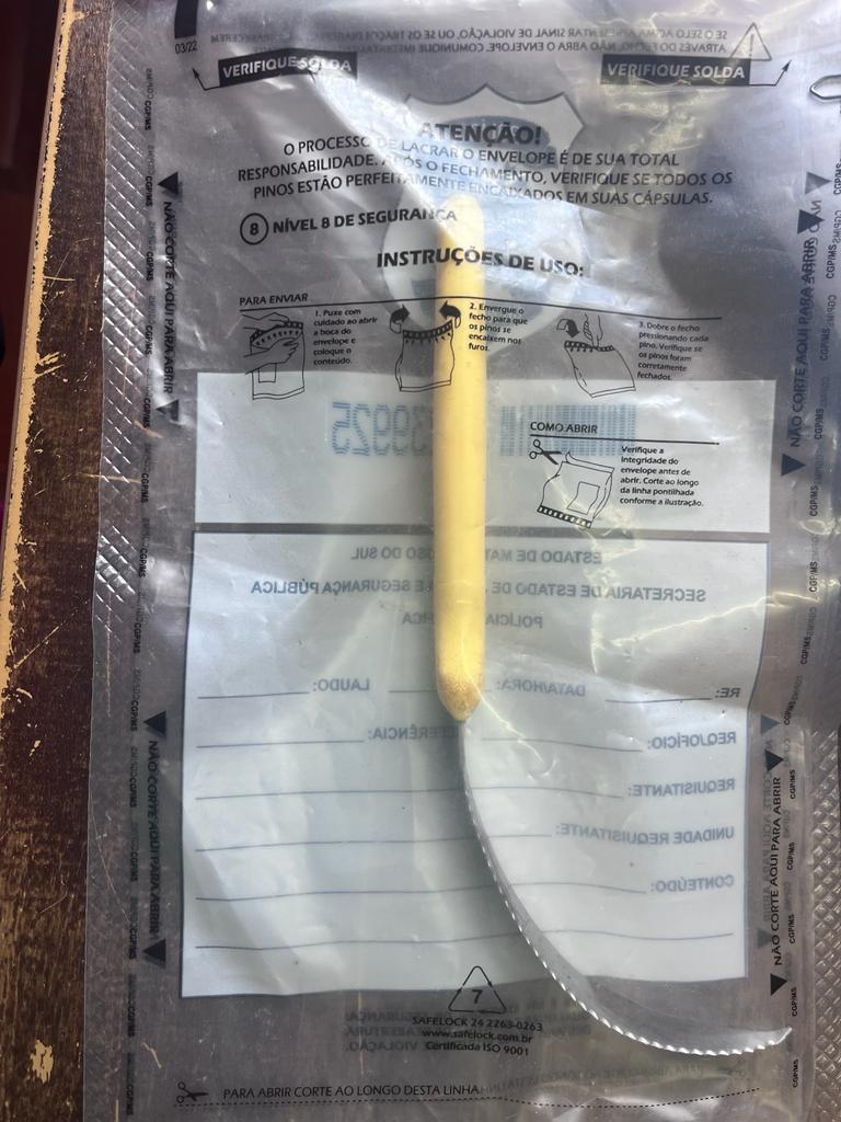 No interrogatório o investigado relatou que durante a discussão, a convivente não o deixava sair de casa e pegou uma faca, ameaçando se cortar caso ele saísse, ele teria tomado a faca da mão dela para impedir que ela se machucasse.