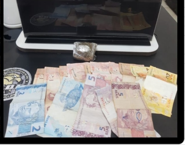 Ao visualizar a viatura ele empreendeu fuga, porém a equipe conseguiu abordá-lo. Com o mesmo foi encontrado uma porção de maconha e dinheiro trocado.