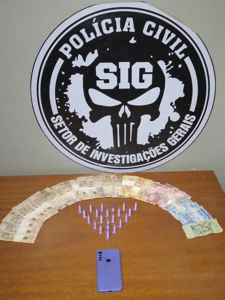 Aparecida do Taboado (MS): Nesta segunda-feira (21), por volta das 18h20min., investigadores da Seção de Investigações Gerais da Delegacia de Aparecida do Taboado realizaram incursão num imóvel residencial e localizaram drogas, dinheiro e objetos de origem desconhecida, o que motivou a prisão em flagrante do proprietário, de 26 anos. Moradores vinham denunciando a movimentação no imóvel localizado na Rua São João, Vila Barbosa.