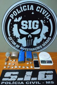 Informações obtidas pelos Investigadores de Polícia apontam que o detido vendia drogas juntamente com um menor (17 anos). No local os policiais encontraram 418,9 gramas de maconha, em forma de duas porções, bem como 60,7 gramas dividias em 16 “paradinhas”, prontas para a comercialização.