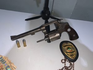 Os homens foram presos em cumprimento a um mandado de prisão preventiva e de busca domiciliar. Com os suspeitos F.B.C.S. (27) e A.F.G.O. (43), os investigadores apreenderam uma arma de fogo utilizada em “tribunal do crime”.