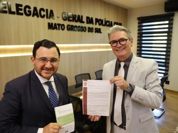 O Delegado-Geral da Polícia Civil do Mato Grosso do Sul, Lupérsio Degerone Lucio, recebeu na manhã desta quinta-feira, 08/05, em seu gabinete, Ivan Gibim Lacerda, o coordenador da Coordenadoria de Atenção Biopsicossocial (CABS) da Secretaria Estadual de