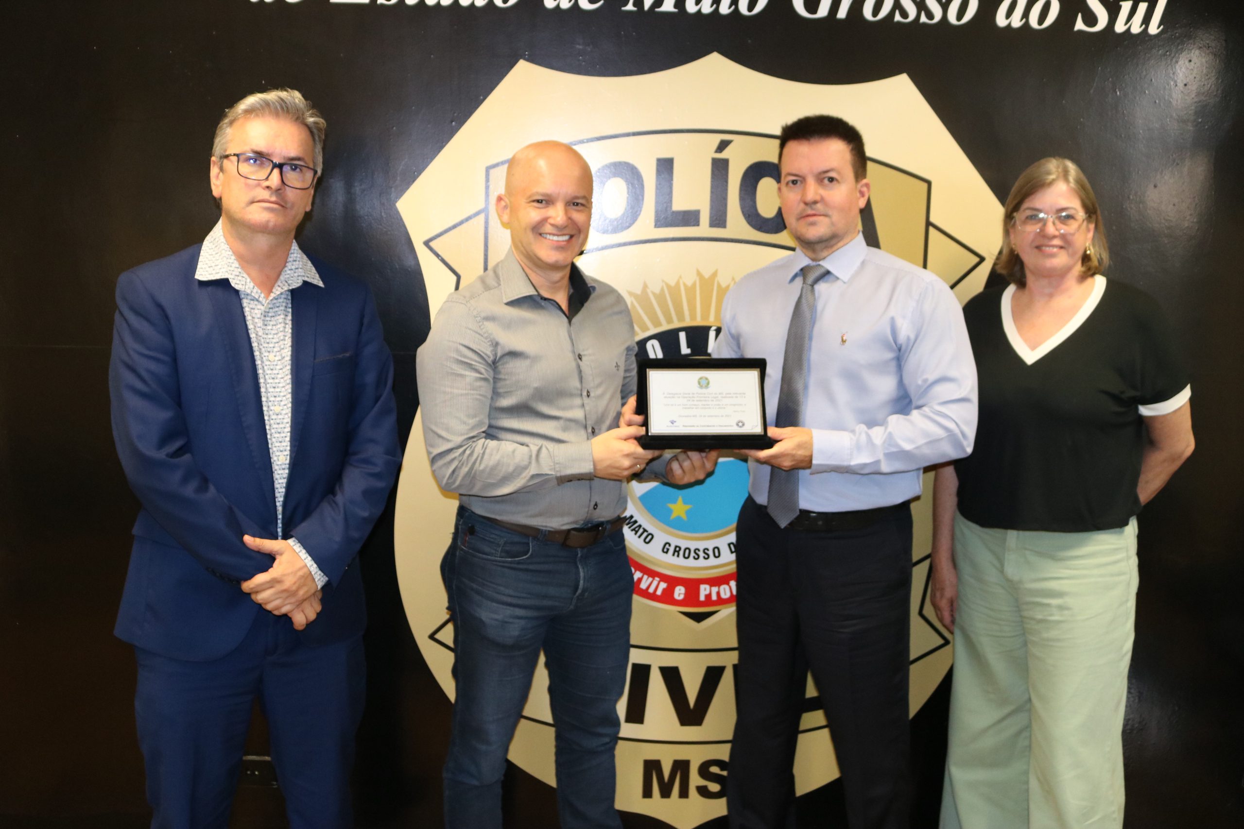 Campo Grande (MS): O Delegado-Geral da Polícia Civil – Adriano Geraldo Garcia – recebeu, no final da tarde desta quinta-feira (21), uma placa de agradecimento pela participação da Polícia Civil na Operação Fronteira Legal, em parceria com a Receita
