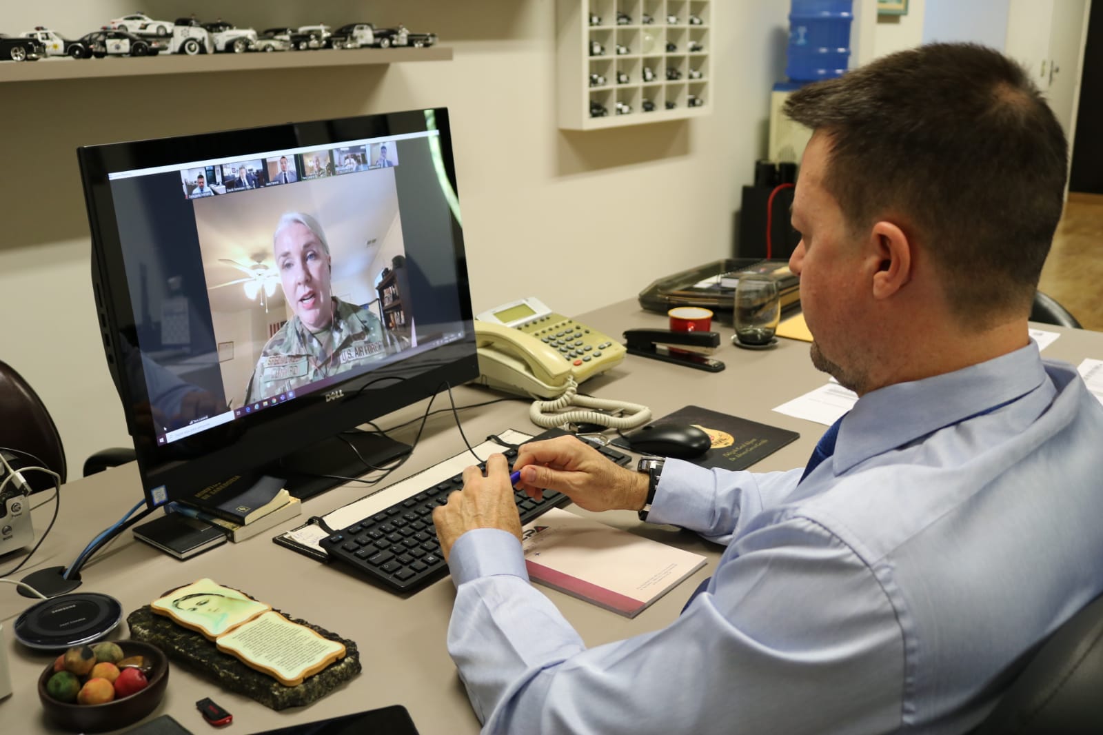 O Delegado-Geral da Polícia Civil, Adriano Garcia Geraldo, participou, nesta quarta-feira, 06/10, de uma videoconferência com a comandante da região 2 do OSI (Escritório de Investigações Especiais da Força Aérea dos Estados Unidos) – coronel